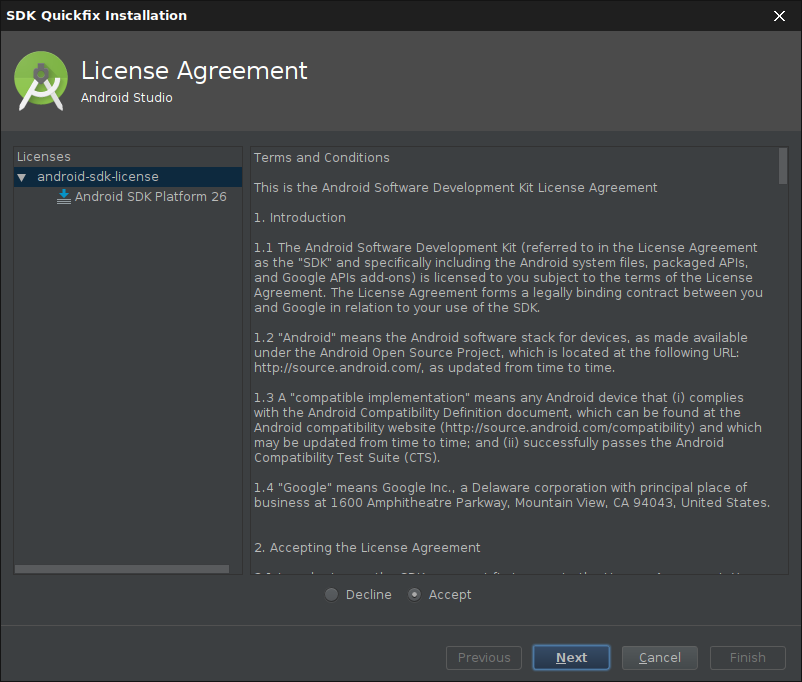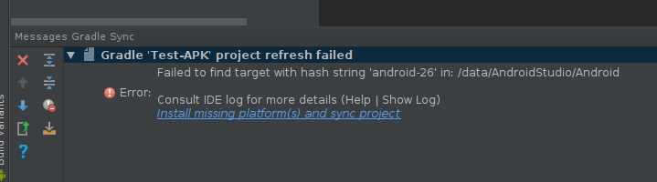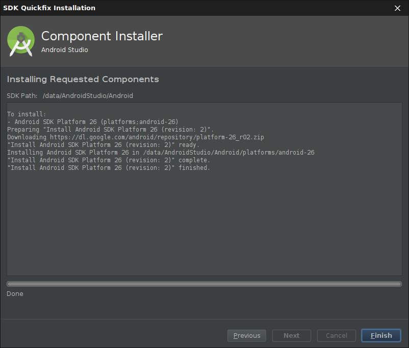 Android Studio zeigt an, wenn weiter Komponenten nachinstalliert werden müssen: