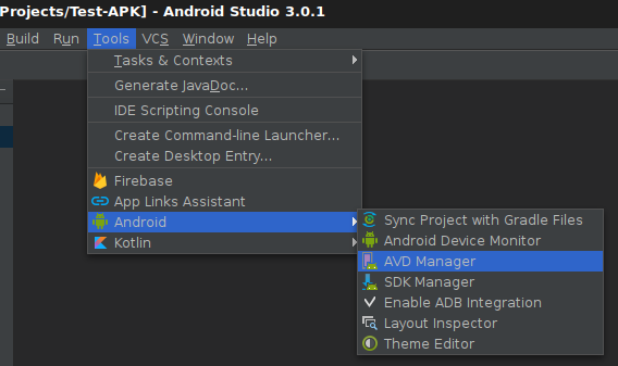 In der Menüleiste auf „Tools“ → „Android“ → „AVD Manager“ klicken.